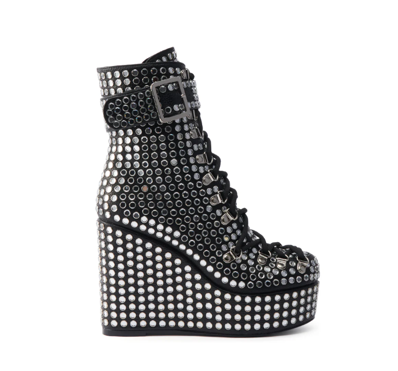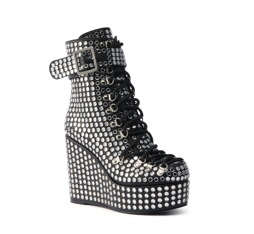 Stivaletti da Donna Neri con Strass e Plateau, Allacciatura con Fibbia, Stile Punk con Borchie, Scarpe da Festa