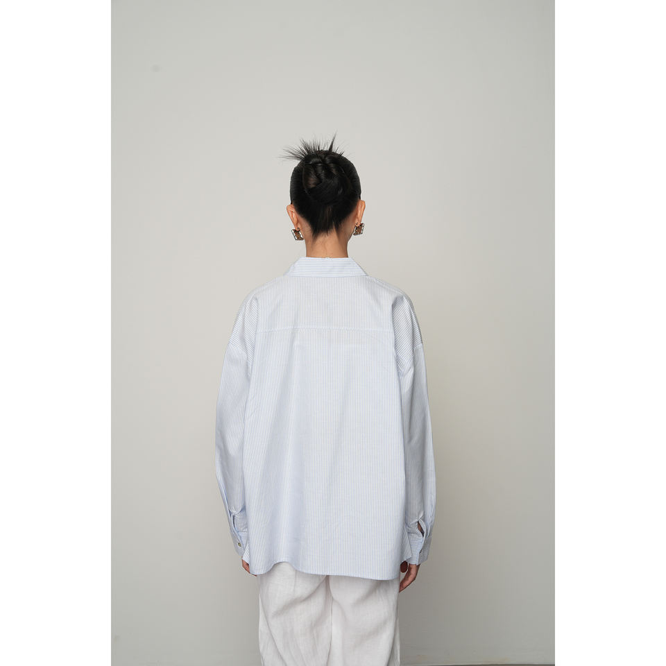 Camicia da donna a righe blu con dettagli a bottoni della collezione Design