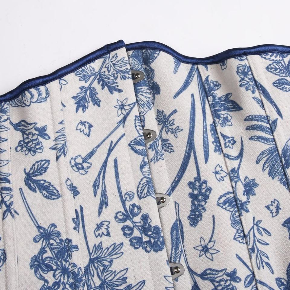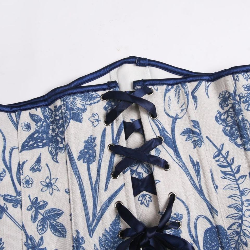 Women's Blue Underbust Waist Cincher Shaper Corset Bustier Floral Pattern Retro Jacquard Lingerie Corsets