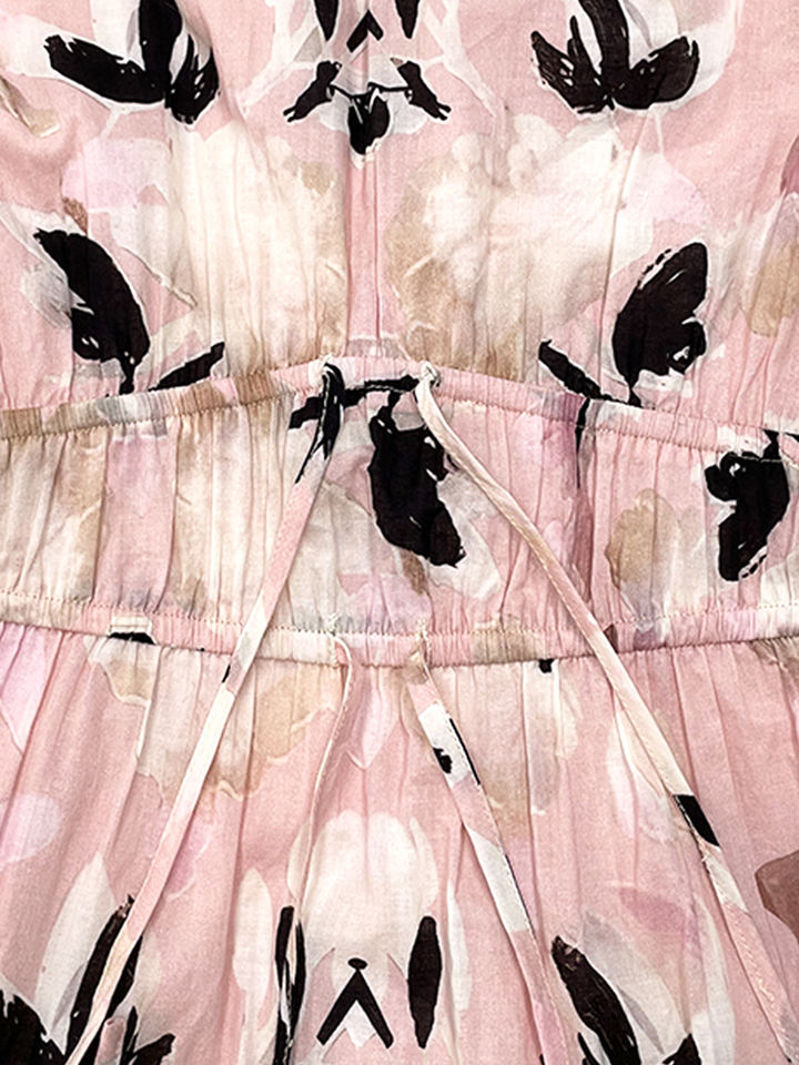 Abito da donna rosa Blush con stampa floreale a maniche lunghe e vita stretta abbigliamento stile Casual Boho Chic per la primavera autunno inverno