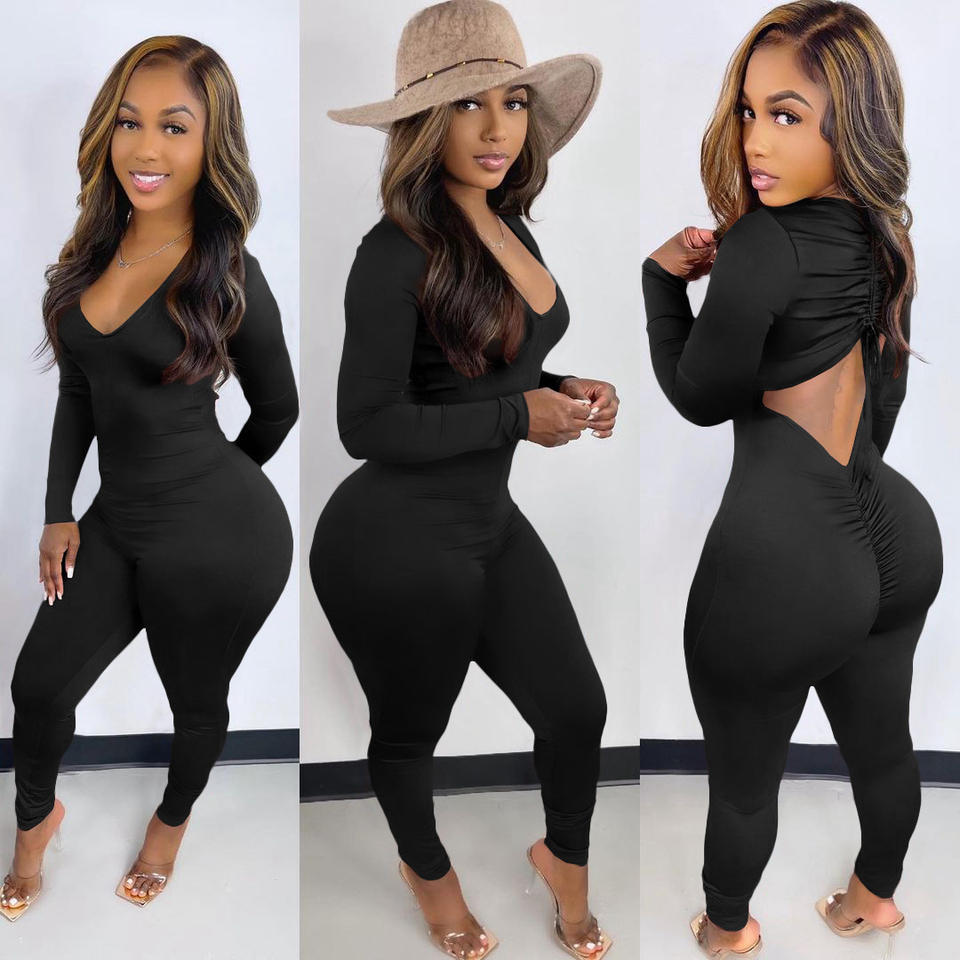 Women's Bodycon 1 Piece Sexy Back Long Sleeve Jumpsuit Full Pants Corset Matching Suit Sportswear Fitness Tights Stretch Suit