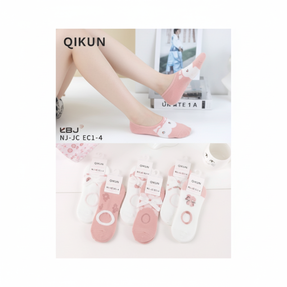 Women's Breathable Cotton Invisible Socks Embroidery Print Patterns Customizable Logo Japanese One Fits All-for Spring Winter