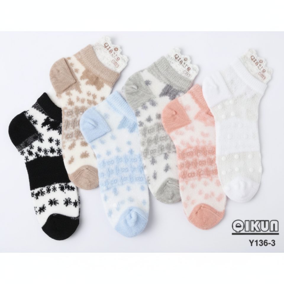 Women's Breathable Jacquard Print Ankle/Crew Socks Diabetic Friendly Spandex Material Custom Logo Summer/Winter Crew Cartoon Bag