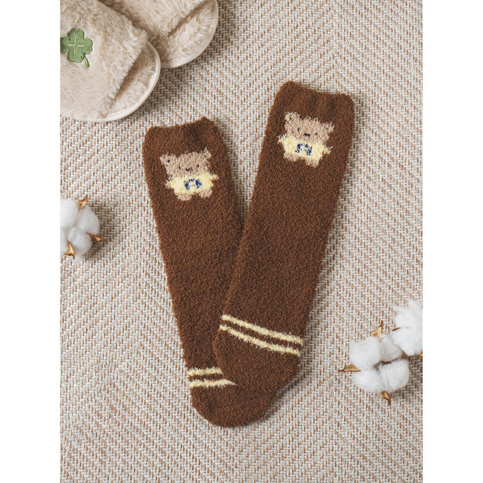 Women's Brown Dressed Bear Sleep Socks
