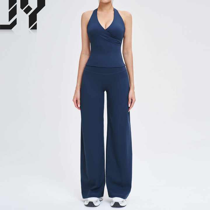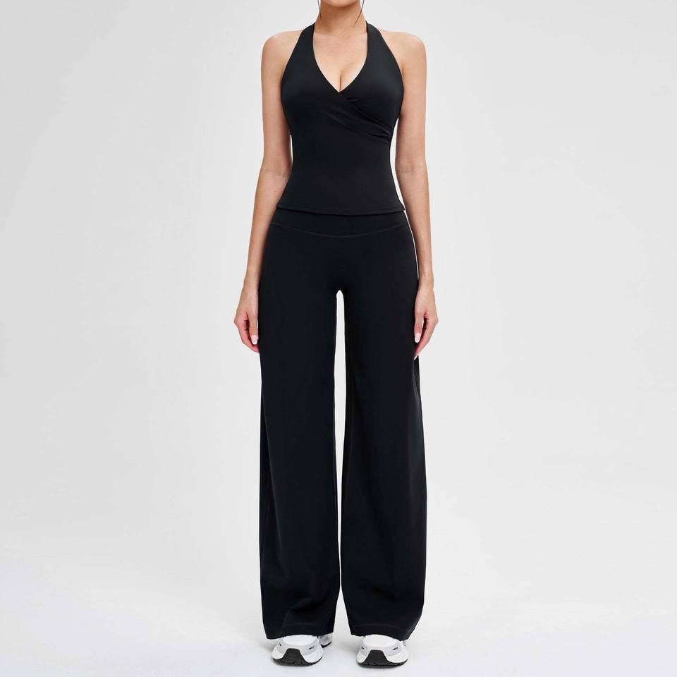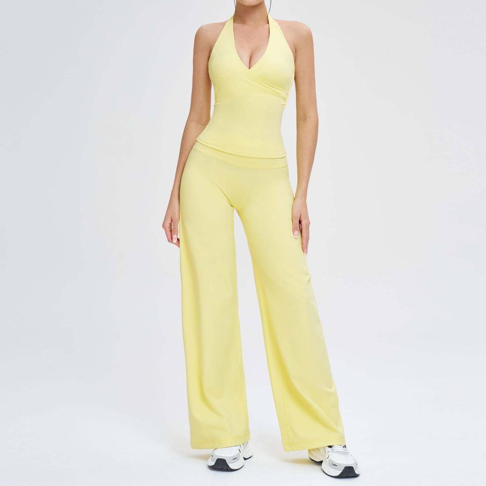 Completo Yoga da Donna in Tessuto Spazzolato: Top Canotta + Pantaloni a Gamba Larga con Apertura sulla Schiena, Abbigliamento Aderente per Yoga, Corsa e Sport all'Aperto