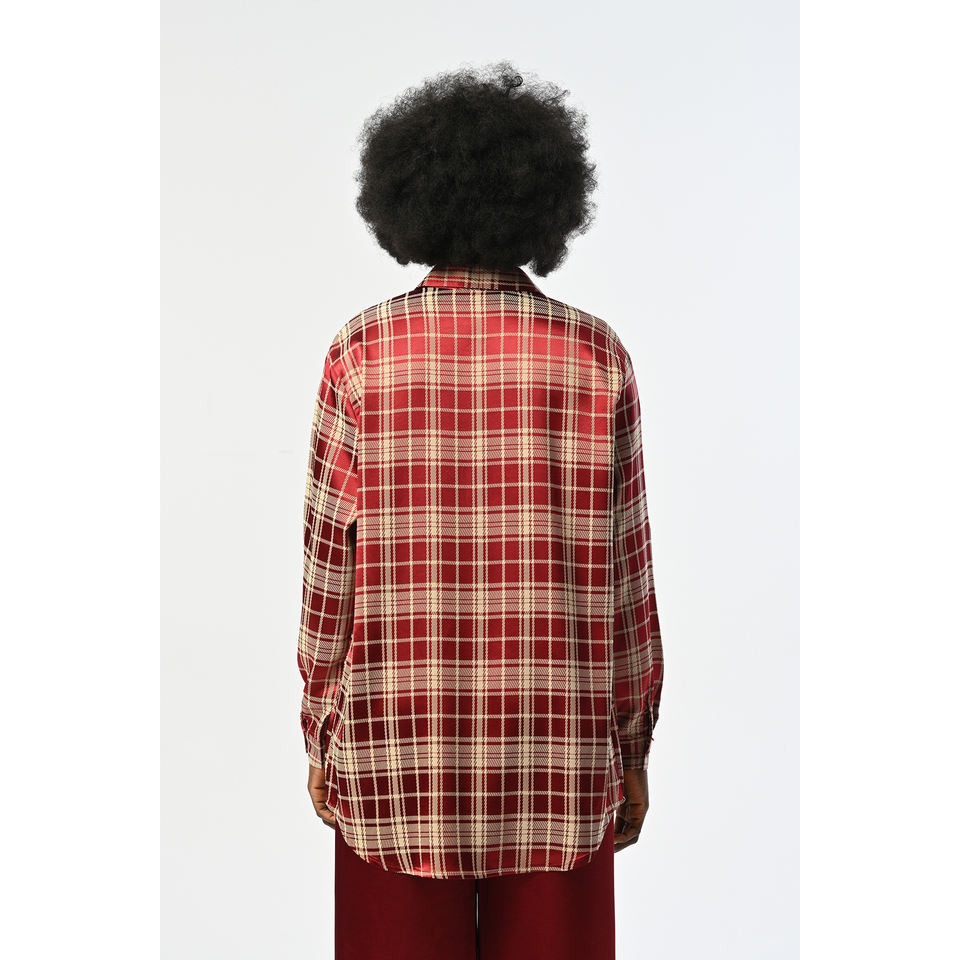 Women's Burgundy Plaid Oversize Blouse Comfortable and Stylish Plaid Shirt Design