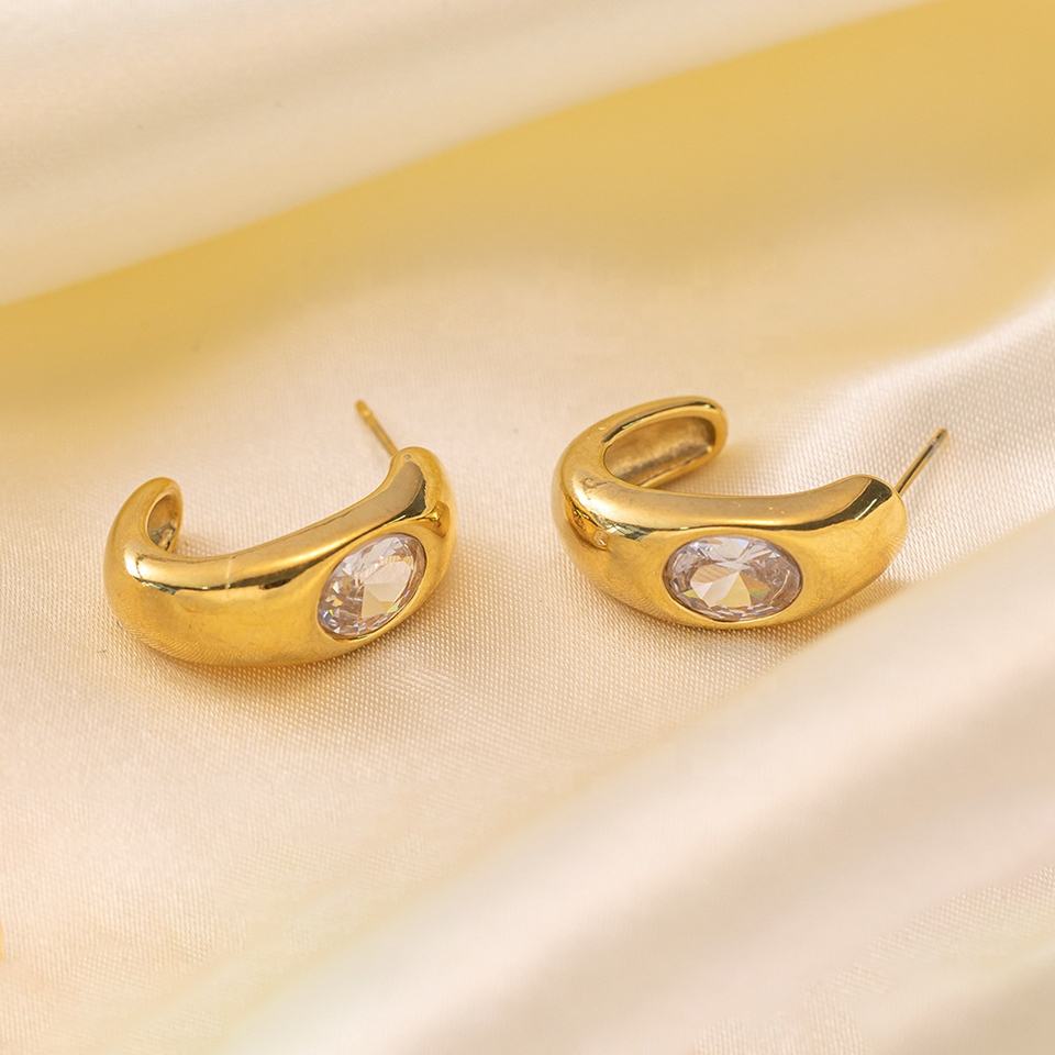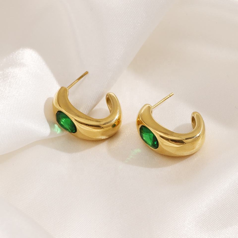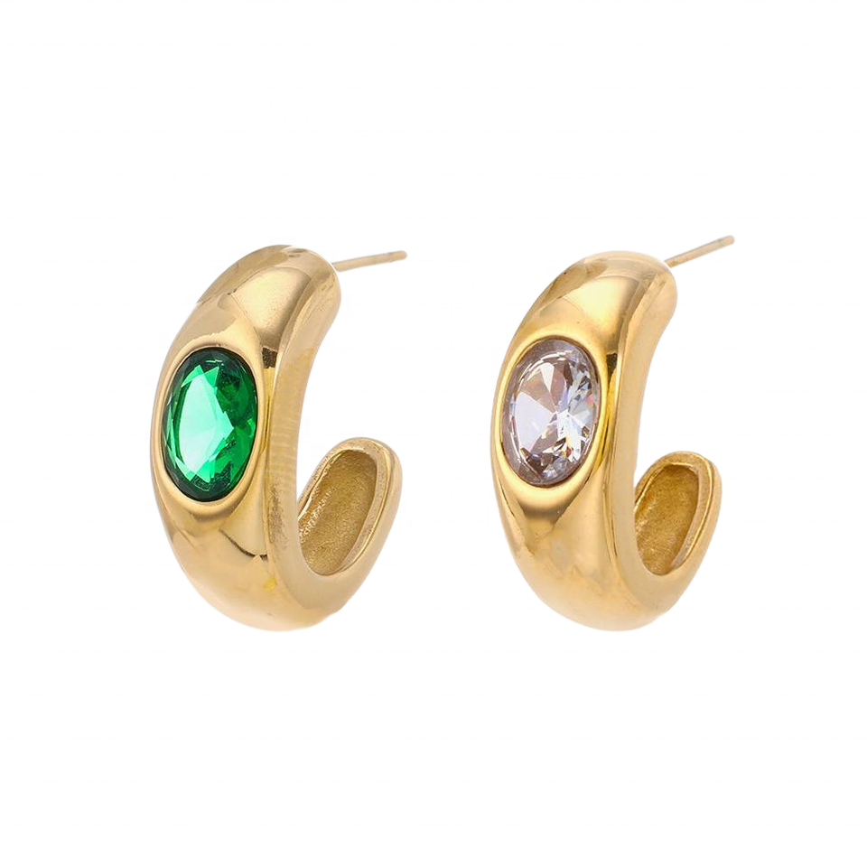 Women's C-shaped Hoop Earrings Fashion Jewelry with 18K Gold PVD 316 Stainless Steel White/Green Zircon and Pearl Stone