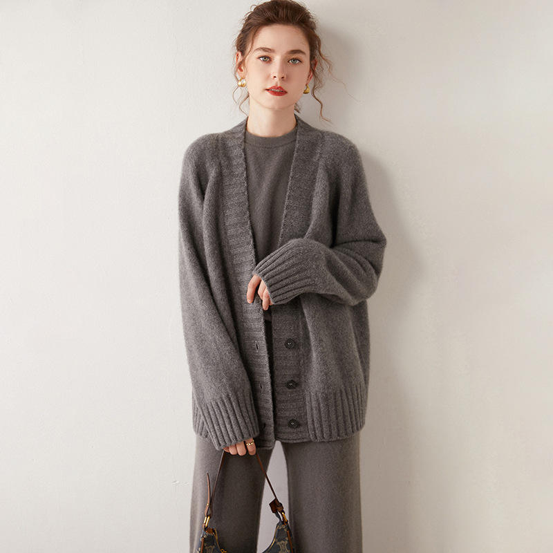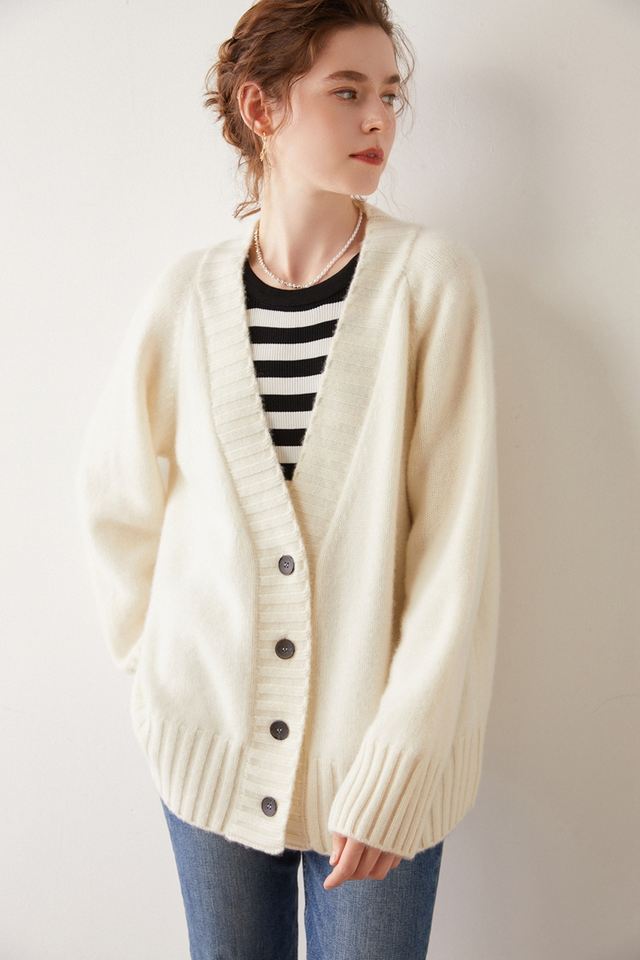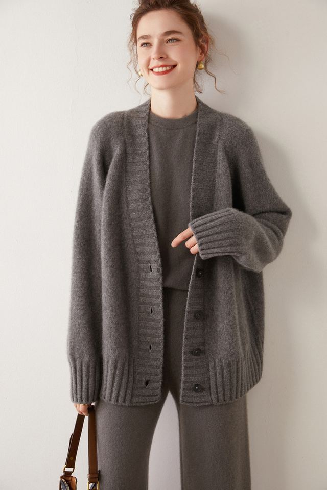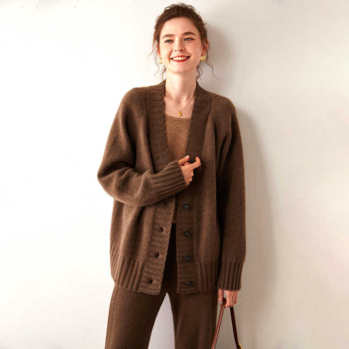 Cardigan in Cashmere da Donna 2024, Maglione Oversize con Bottoni Frontali, Scollo a V, Cardigan in Cashmere e Lana Morbido