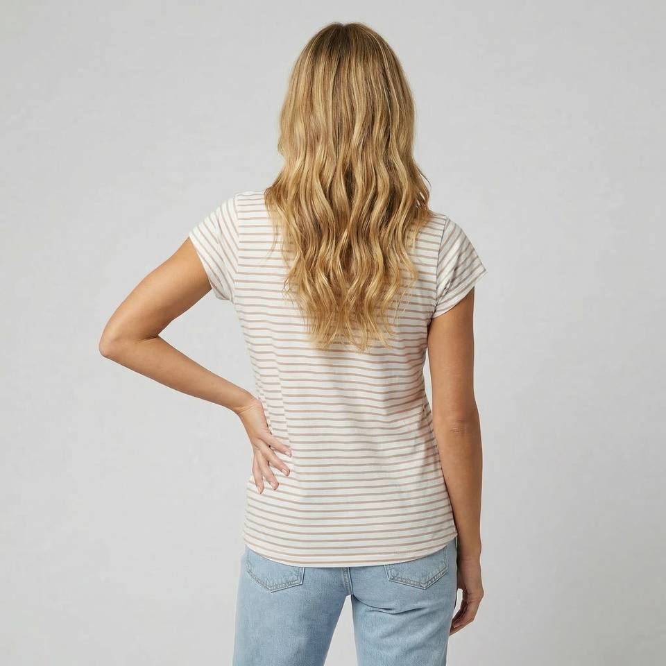 Women's Casual Breathable Short-Sleeve Striped Sailor-Style Henley T-Shirt 85% Viscose Spring/Summer