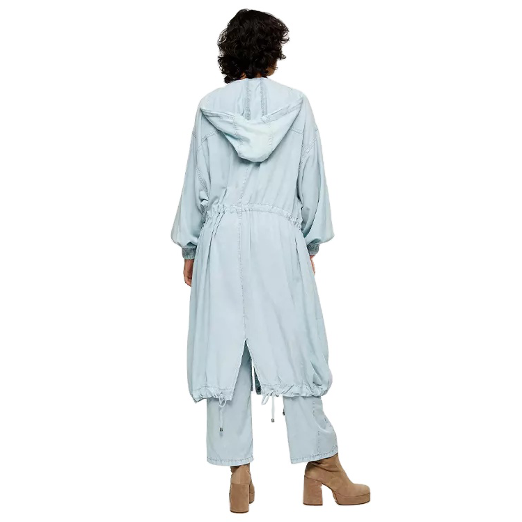 Giacca Casual personalizzata con cappuccio lunga da donna pantaloni di jeans blu a gamba dritta giacca ampia Blazer tinta unita pantaloni cappotto in Denim