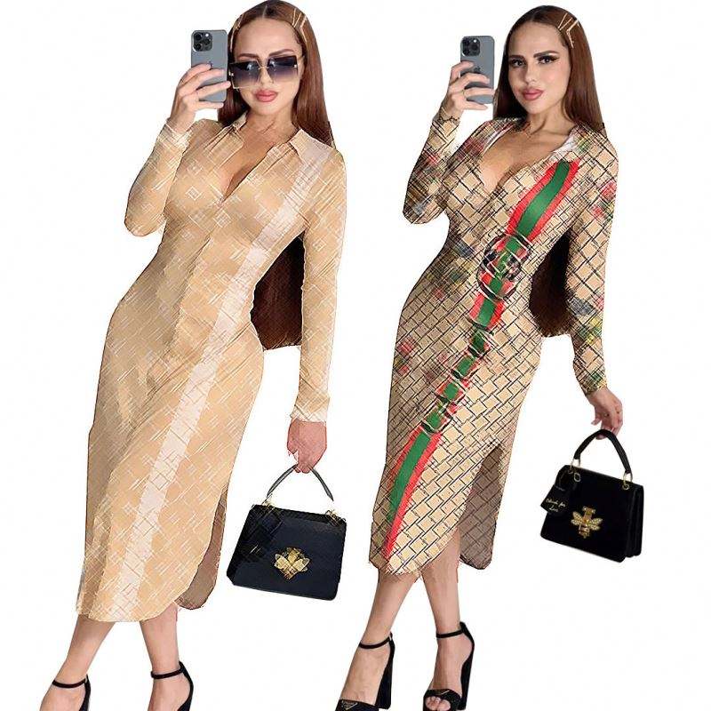 Women's Casual Elegant Long Dress Slit Collar Brand Clothing Featuring Digital Printed Design Wholesale Fashionable Sexy Shirt