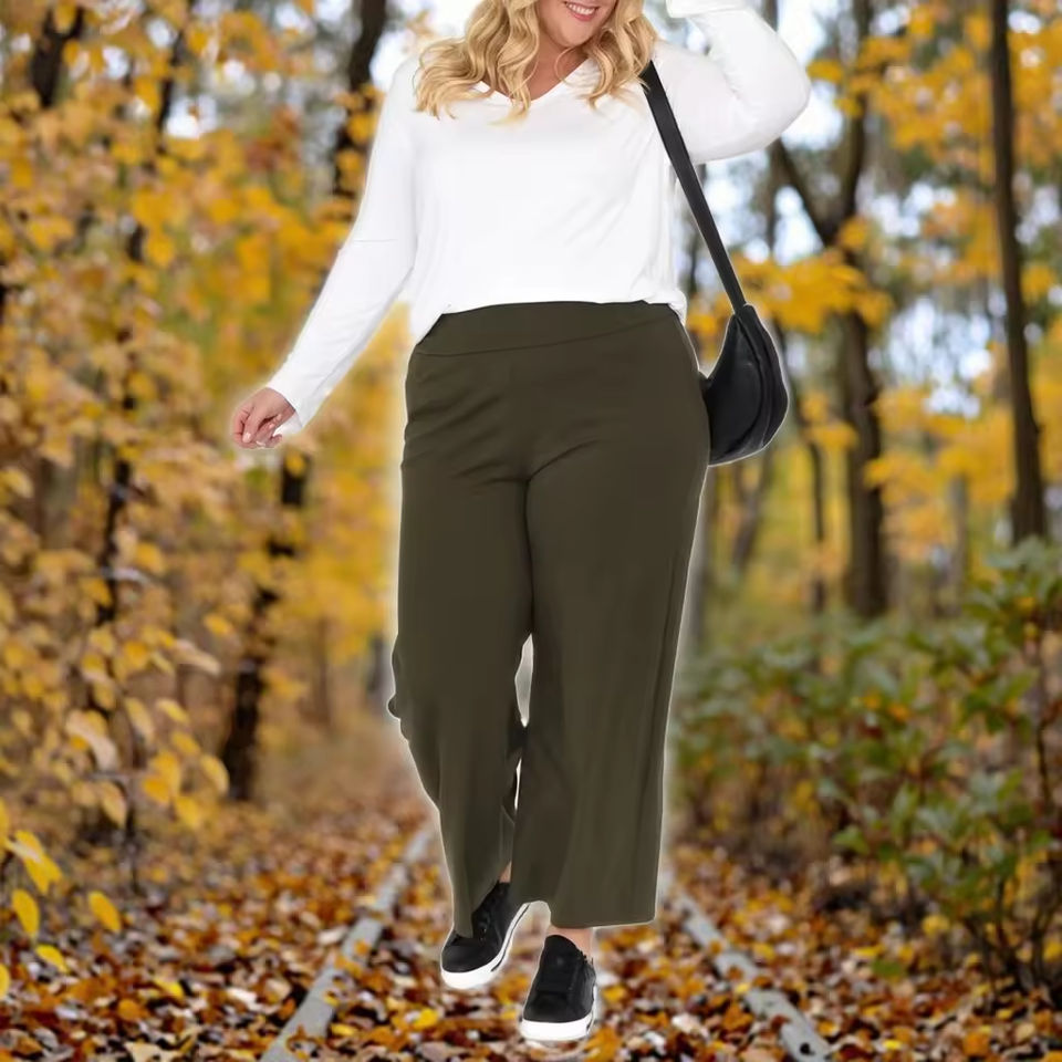 Women's Casual Pants & Trousers Collection Straight Leg Elastic Waist Flat Front Plus Size