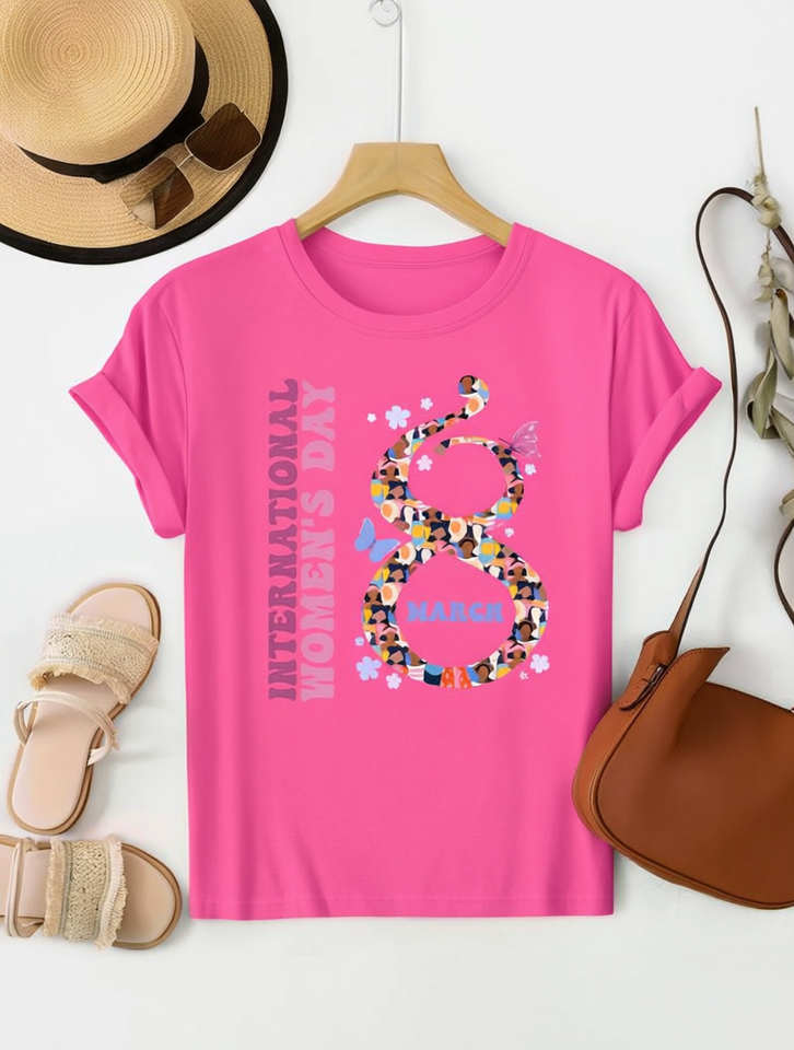 Women's Casual Round-Neck T-Shirt Short Sleeve Printed Graphic Jersey Fabric Regular Fit All Seasons International Women's Day