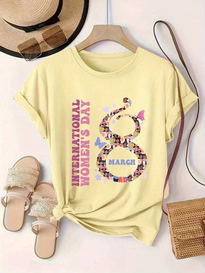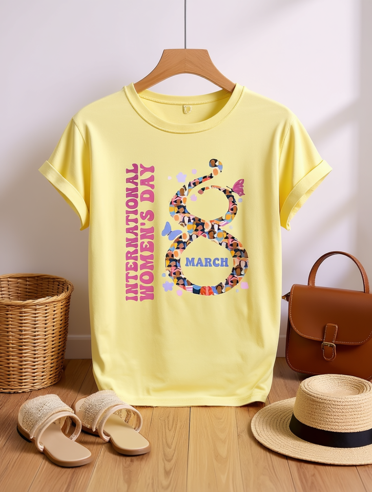 Women's Casual Round Neck T-Shirt Short Sleeve Printed Graphic Jersey Fabric Regular Fit All Seasons International Women's Day