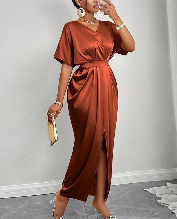 Women's Casual Short Sleeve Backless Dress With V-Neck High Waist and Slit Nightclub-Style Long Skirt for Summer Sustainable