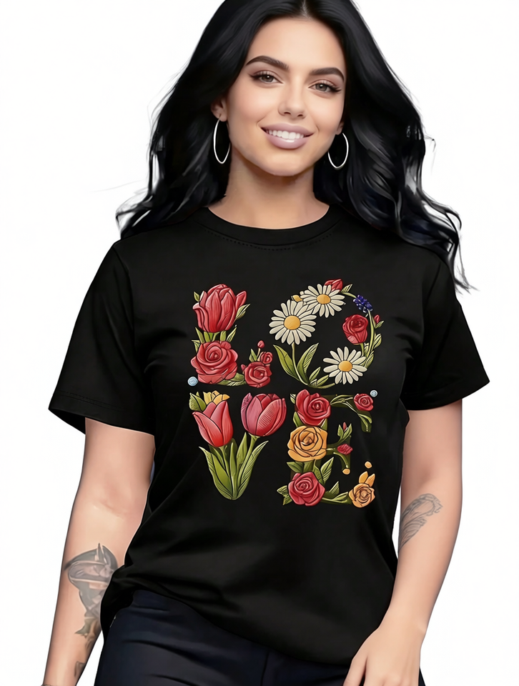 Women's Casual Short Sleeve Round Neck T-Shirt Floral Print 100% Cotton Lightweight Spring Summer Fashionable Elegant Gift