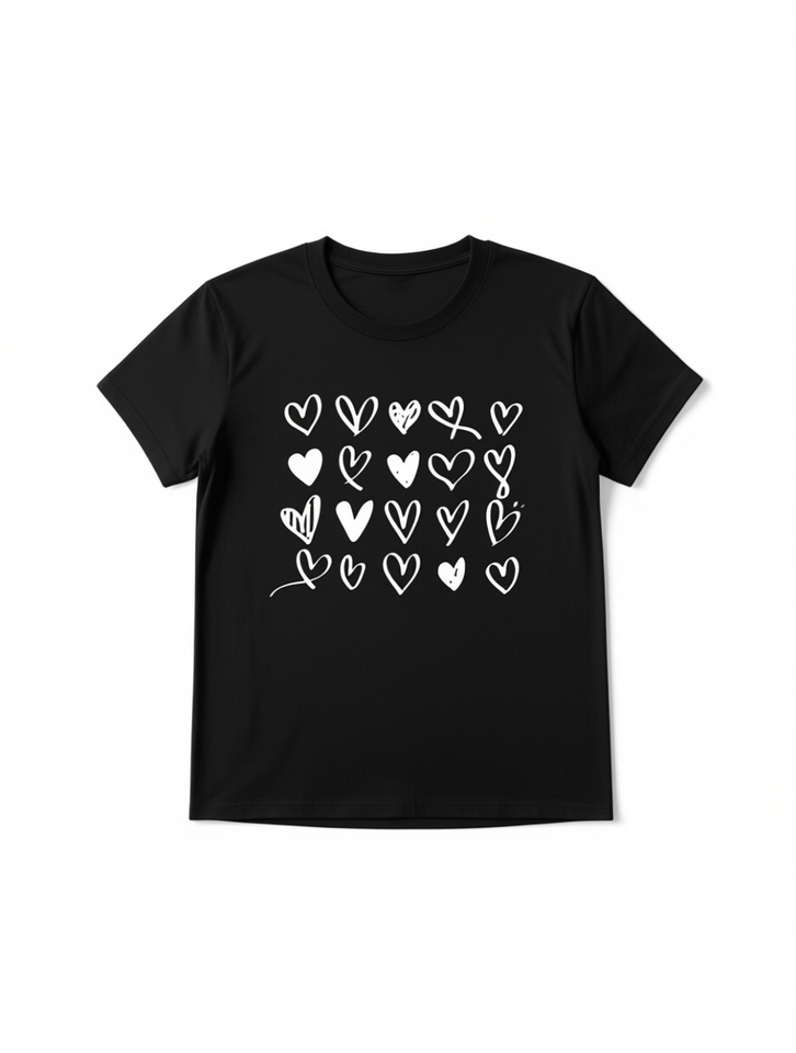Women's Casual Short Sleeve T-Shirt Heart Pattern Printed 100% Cotton Crew Neck Regular Fit Spring Summer Wear