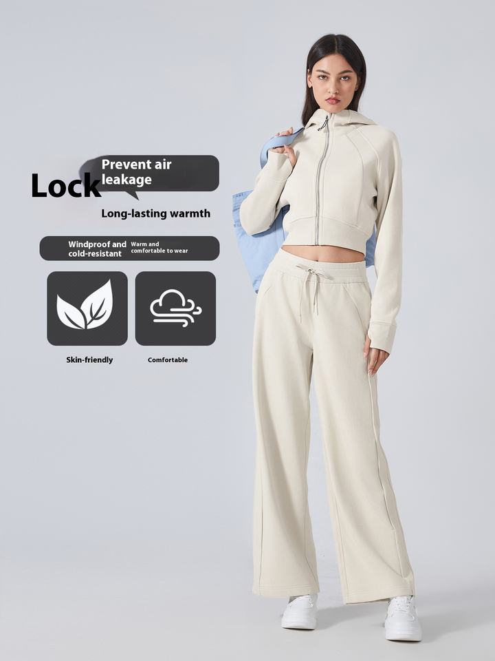 Women's Casual Short Slim Yoga Top Jacket Autumn Winter New Zipper Hooded Cardigan Sweatshirt with Anti-Pilling Feature