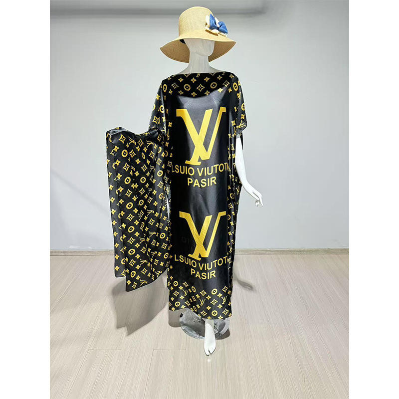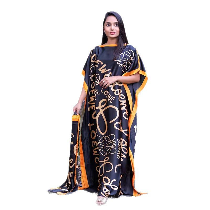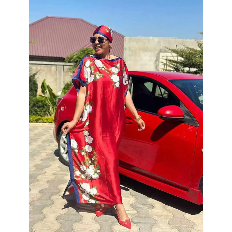 Women's Casual Summer Long Skirt New African-Style Brocade Dress Breathable Silk Robe Sun Protection Clothing for Aunt