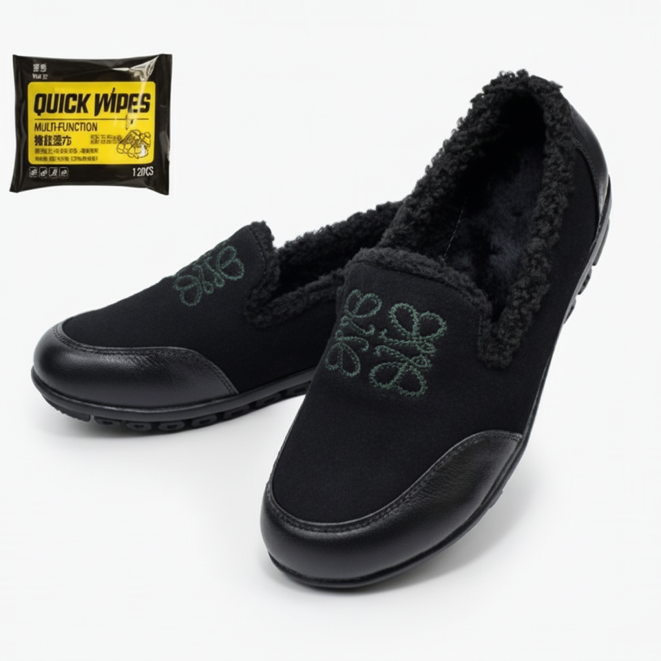 Women's Casual Winter Shoes with Fur Slip-On Design Fleece Material Shoe Cleaning Tissue Set