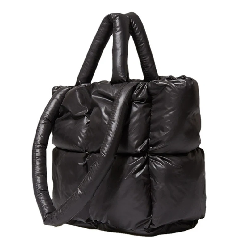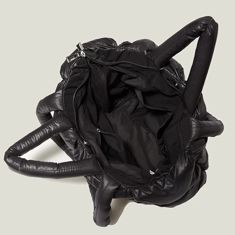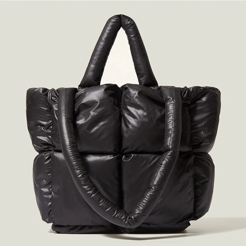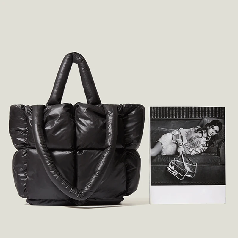 Women's Casual Winter Single Shoulder Tote Bag Large Capacity Space Pad Cotton Feather Bucket Handbag Oversized Shopping Bolsa