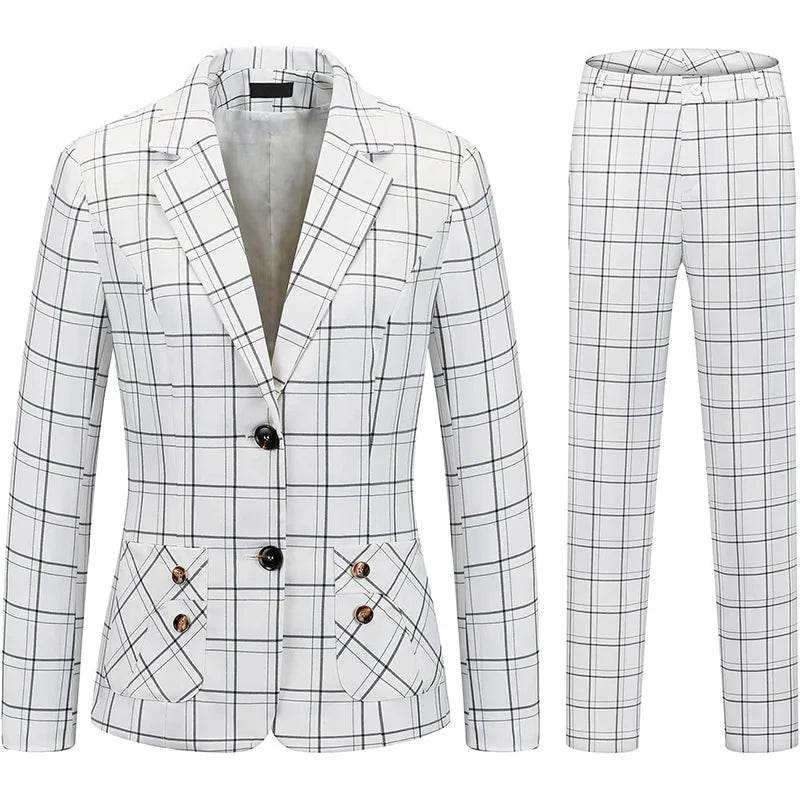 Women's Chic Vintage Plaid Suit Set Long Sleeve Slim Blazer & High Waist Casual Pants Single Button Ankle-Length Office Wear