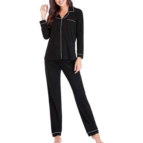 Women's Classic Comfort Spandex Pajama Set Two-Piece Soft Homewear with Drawstring Closure Customizable Logo LY888_1