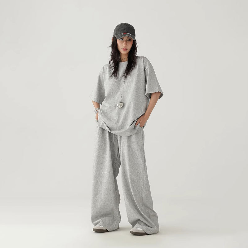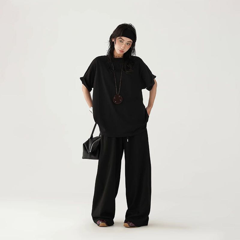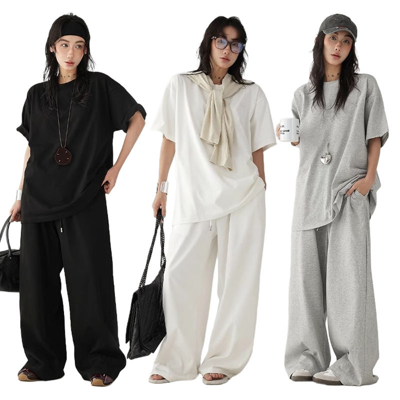 Women's Clothes Custom Knitted Oversized Breathable T-Shirts Cotton Vintage Style Solid Pattern Print Women's Suits for Summer
