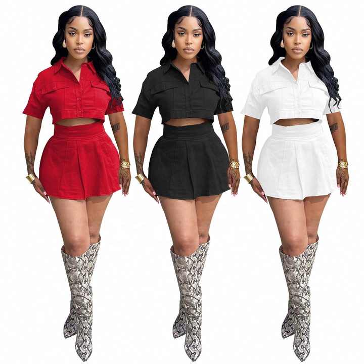 Abbigliamento da donna 2026 primavera ed estate popolare stile utensili maniche corte e gonna abito due pezzi da donna