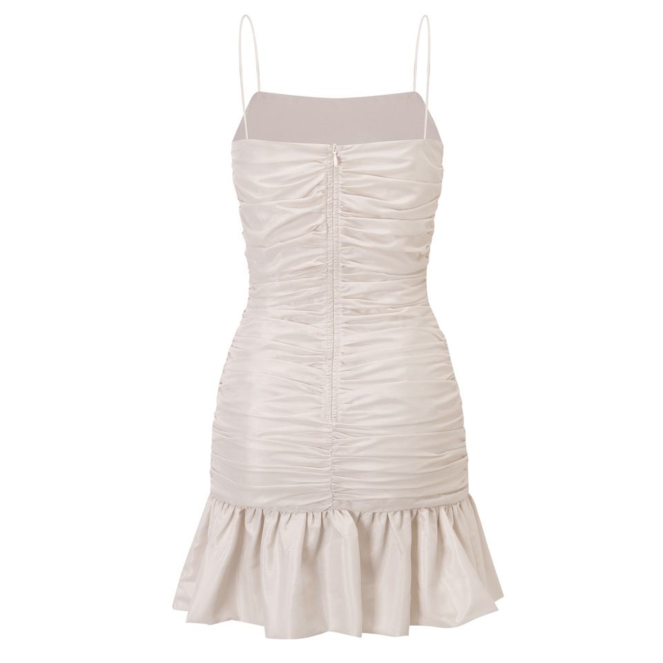 Women's Clothing Plus Size Sexy Elegant Russia Teen Girls Beige Casual Zipper Ruched Ruffled Hem Cami Bodycon Mini Dress Women
