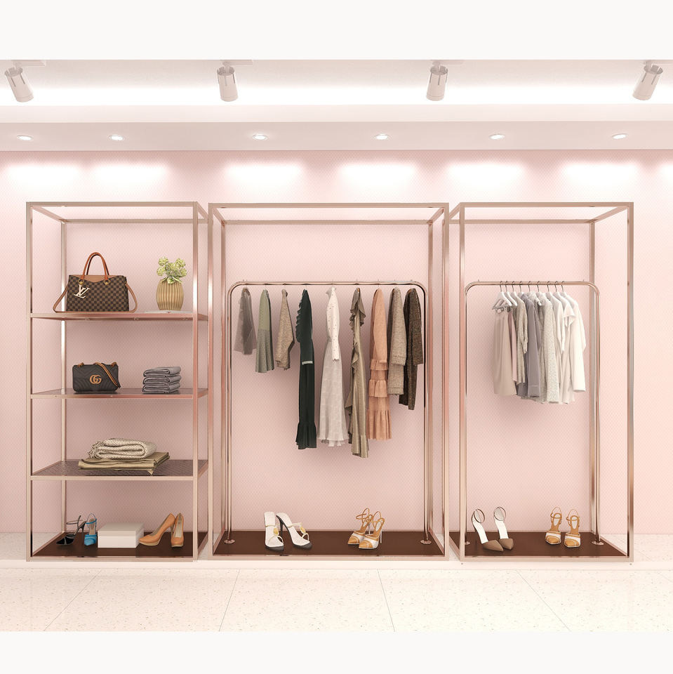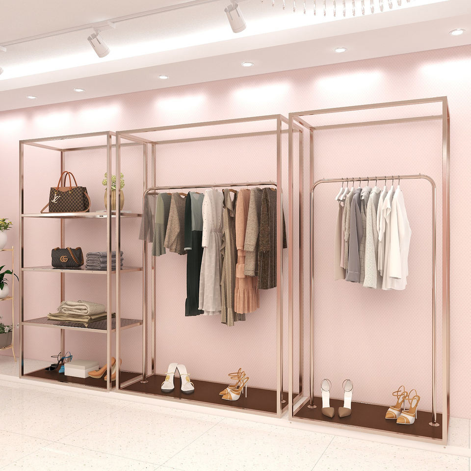 Women's Clothing Store Double Layer Display Rack Golden Shopping Mall Hanging Clothes Rack Atmospheric Women's Clothing Store