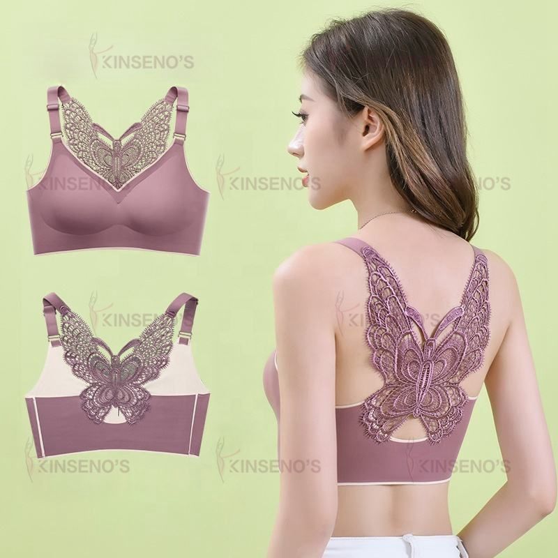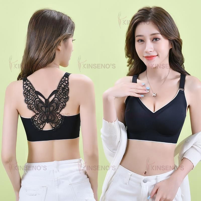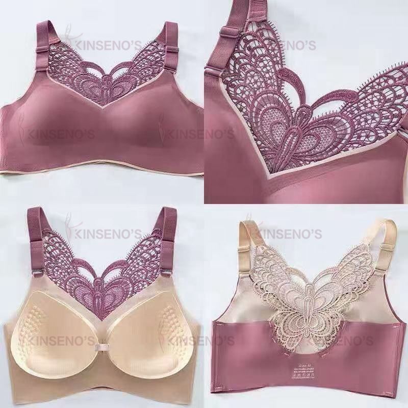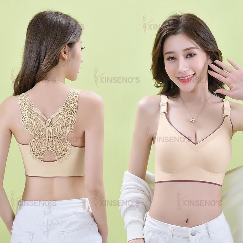 Women's Comfort Plus Size Latex Cup Wireless Embroidery Butterfly Back Padded Underwire Bra