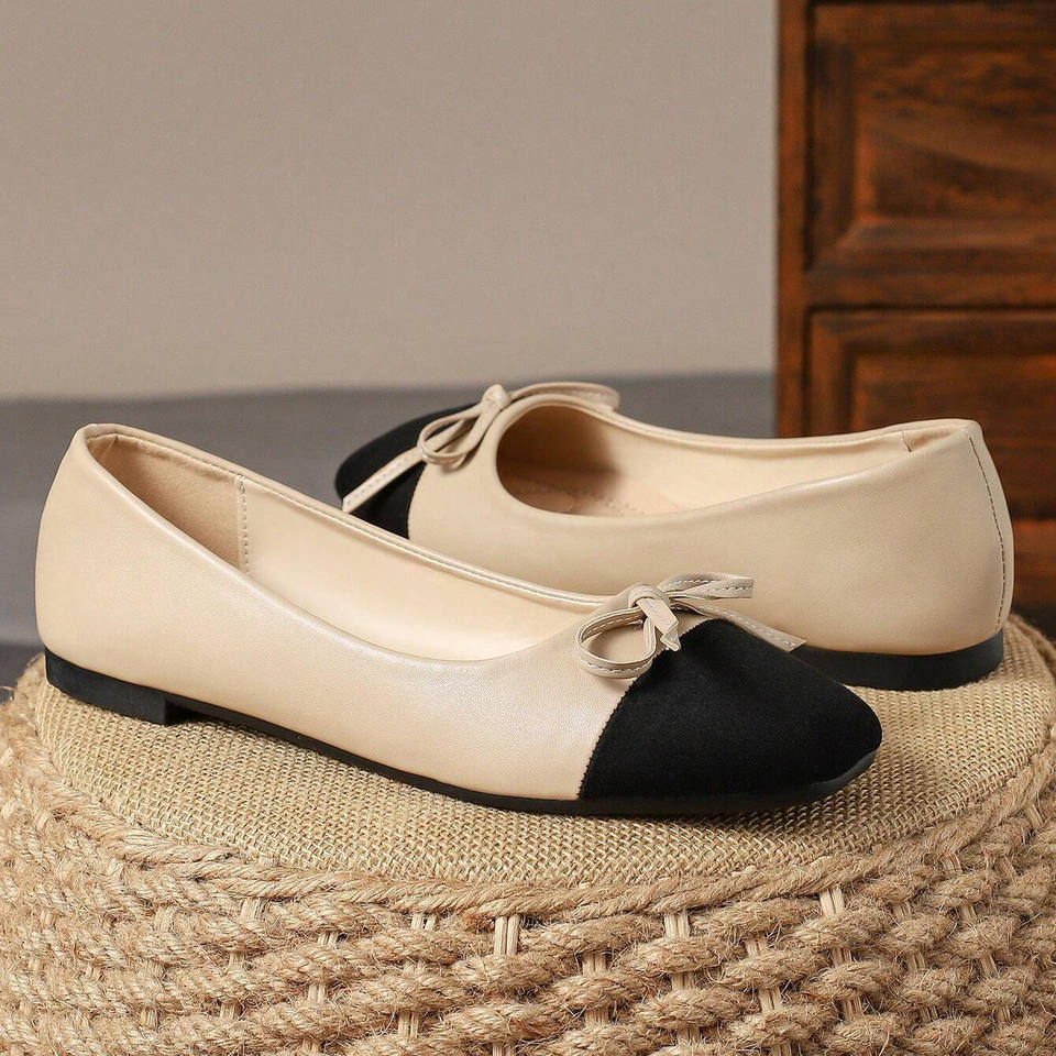Ballerine comode da donna scarpe basse da balletto a punta quadrata con chiusura a fiocco per tutte le stagioni-estate e inverno