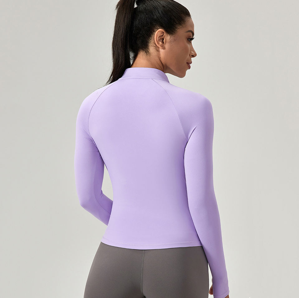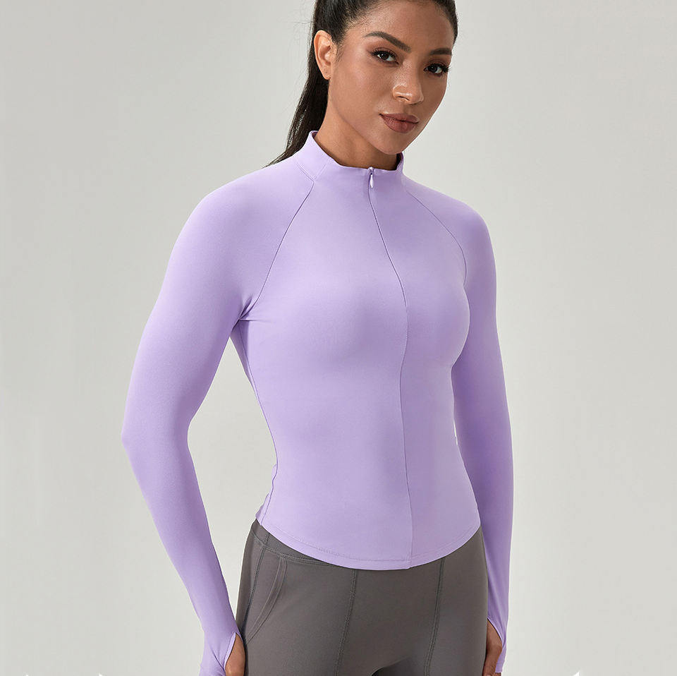 T-shirt da allenamento a manica lunga a compressione da donna con cerniera termica elastica a prova di vento stampata per la stagione estiva primaverile autunnale