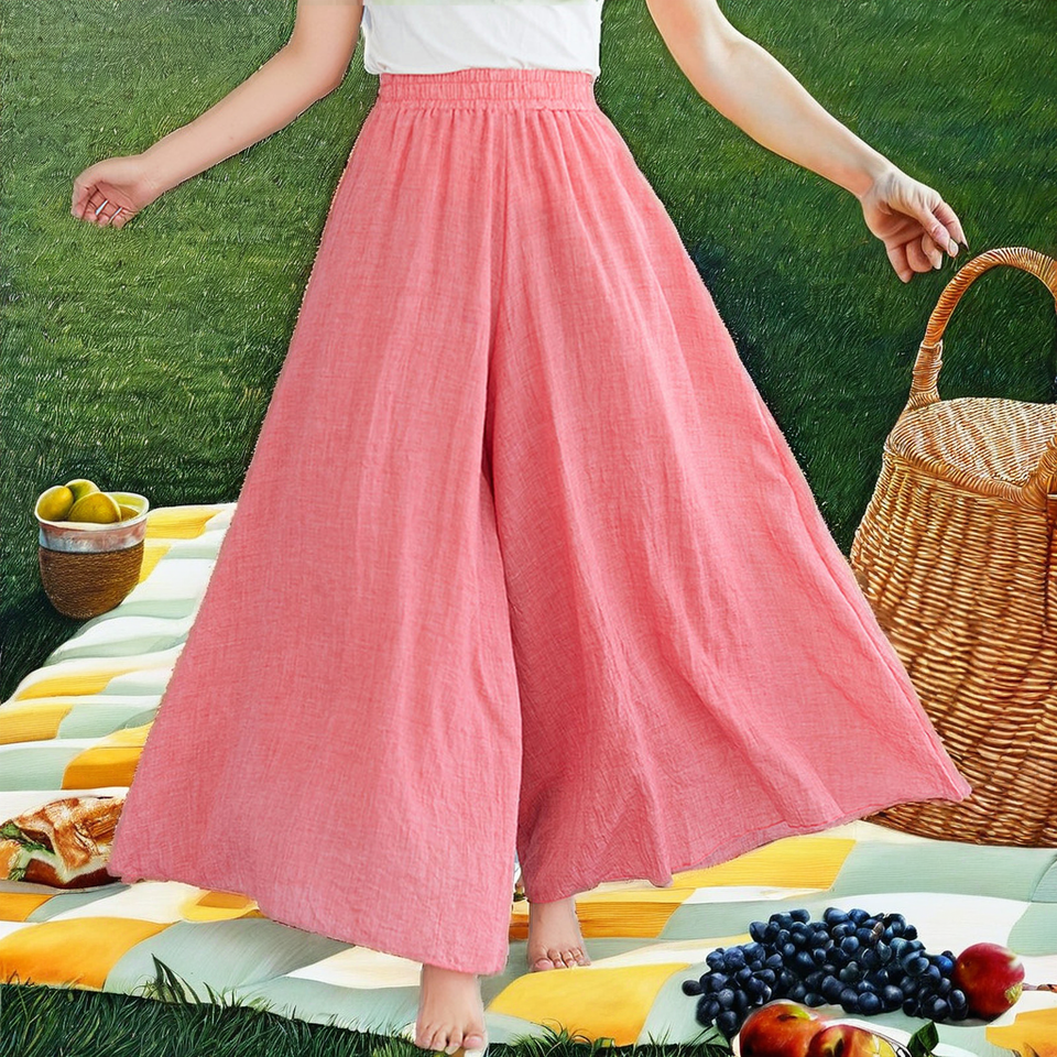 Women's Cotton Linen Pants Skirt Elastic Waist Solid Color Breathable Swing Trousers Casual Mid Waist Style Loose Fit For Spring