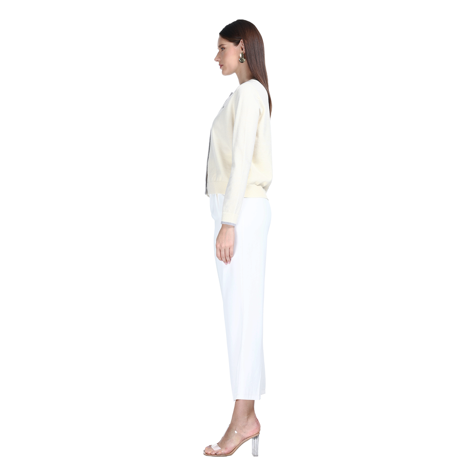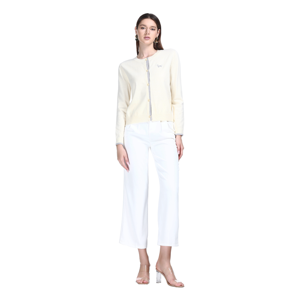 Cardigan da Donna a Collo Tondo con Maniche Lunghe, Ricamo Animale e Bottoni, in Maglia Solida, Minimalista Casual Primavera Autunno 2026