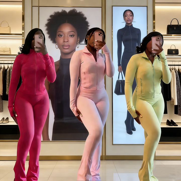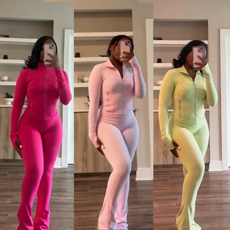 Set da donna su misura 2 pezzi di allenamento Fitness in palestra pantaloni Skinny Yoga completo Leggings svasati colletto in tinta unita corsa elasticizzata