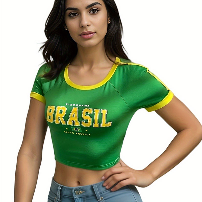 Women's Custom Tight T-Shirt Hot Sale 100% Cotton Knitted Anti-Pilling O-Neck Breathable Geometric Pattern Navel-Baring Style