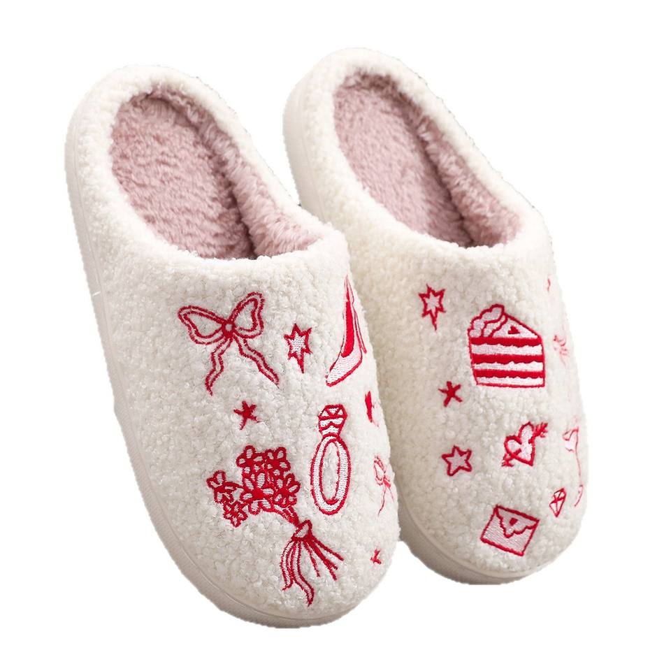 Pantofole da Casa in Peluche con Ricami Carini per Donne - Stile Confortevole da Interno con Motivi a Fiocco e Torta