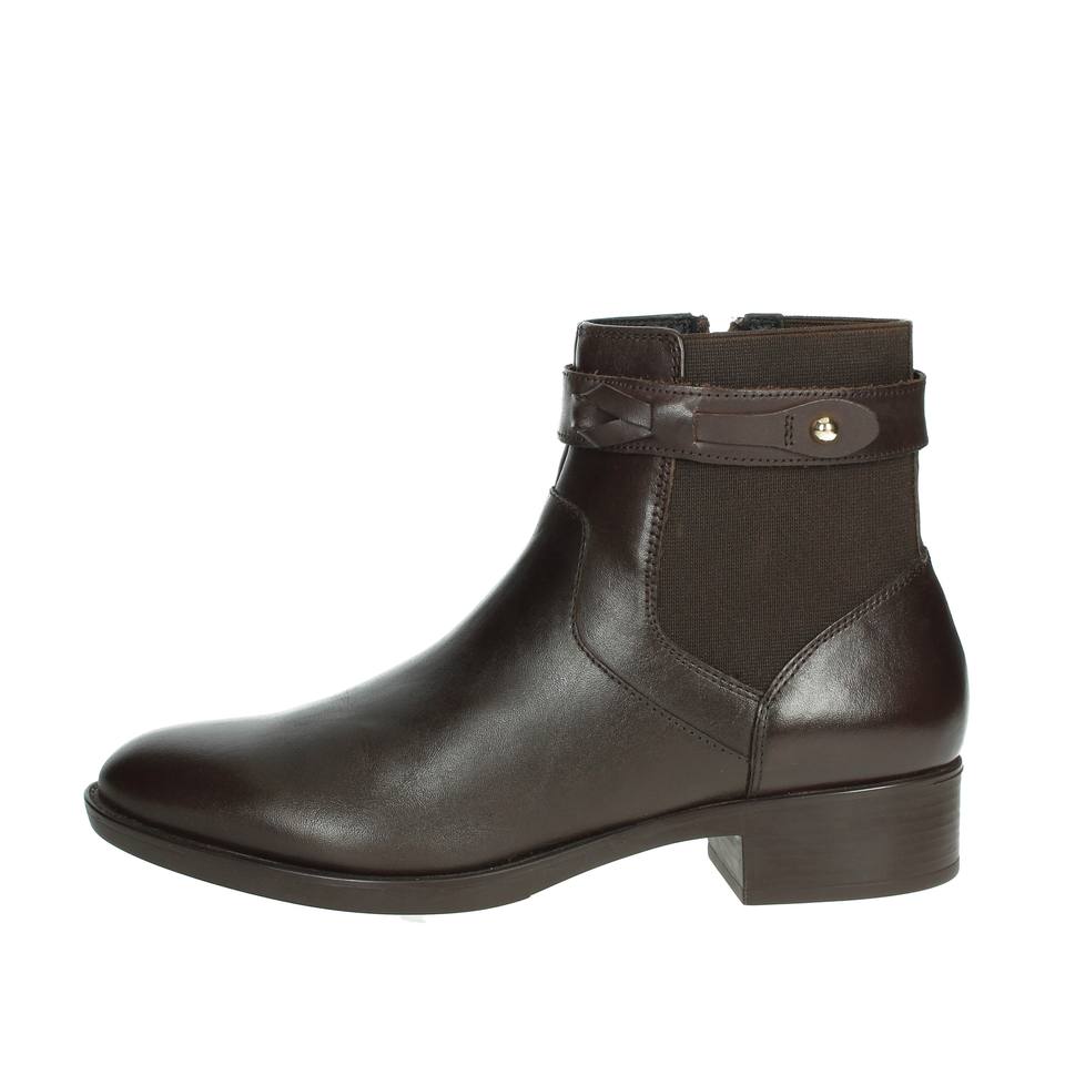 Women's D36G1F 043NH Brown Low Ankle Boots Pointed Toe Slip-On Closure High Height Winter Autumn Fur PU Ladies' Cowboy Chelsea