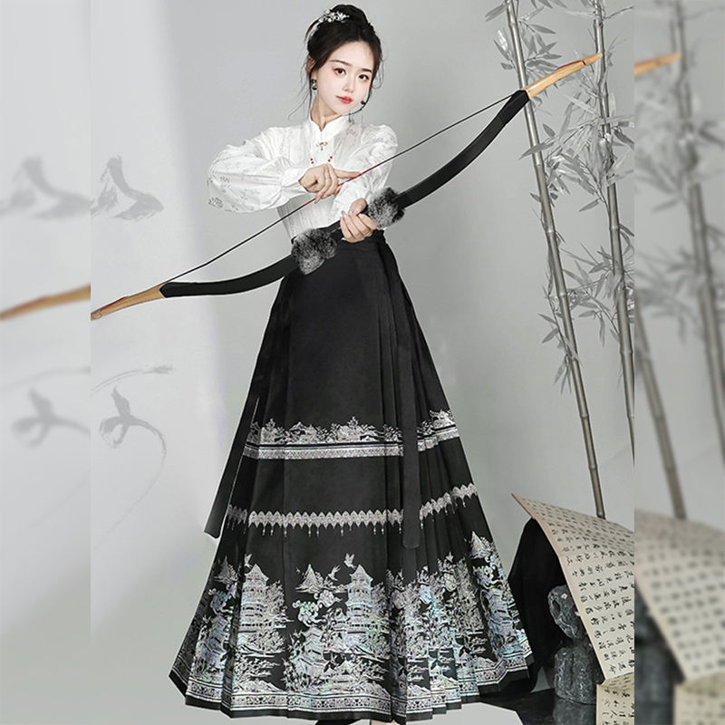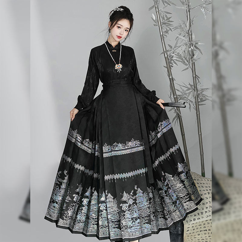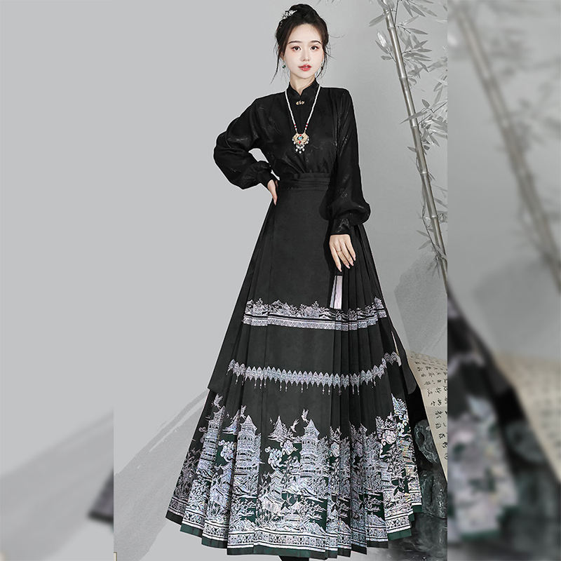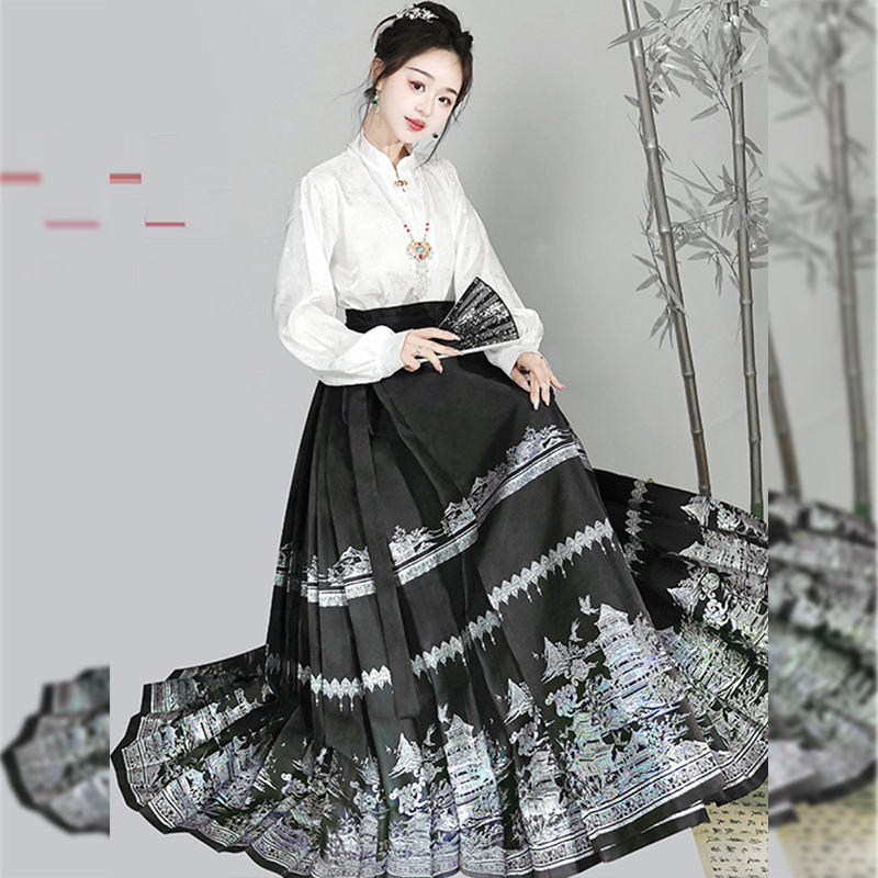 Abito Tang da Donna per Uso Quotidiano, Stile Tradizionale Cinese con Stampa Floreale, Gonna a Faccia di Cavallo Realizzata a Mano da Artisti Cinesi, in Poliestere