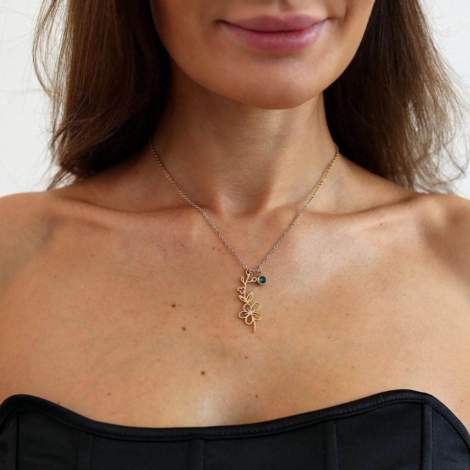 Women's Dainty 18K Gold Plated Birth Flower Birth Stone Pendant Necklace Trendy Copper Material with Zircon for Mother's Day