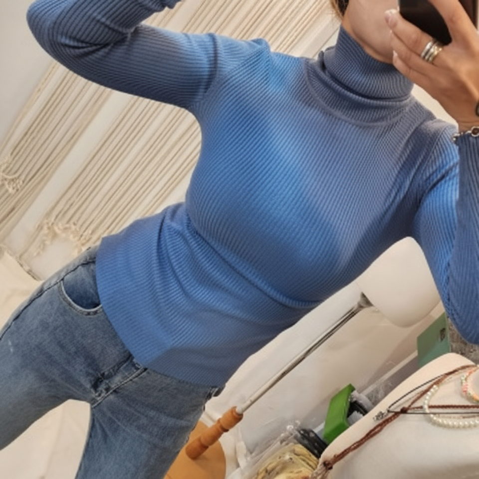 Women's Deep Blue Slim Fit Winter Golf Neck Polo Premium Golf Clothing