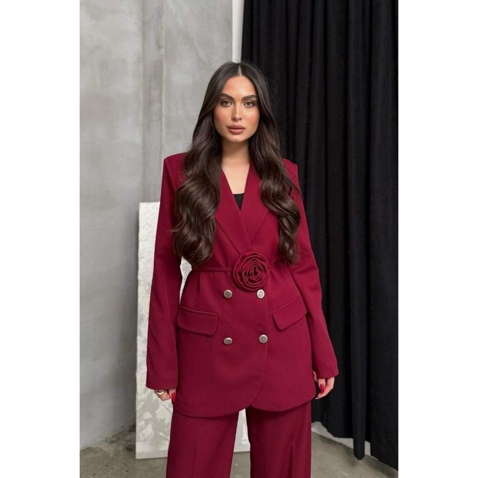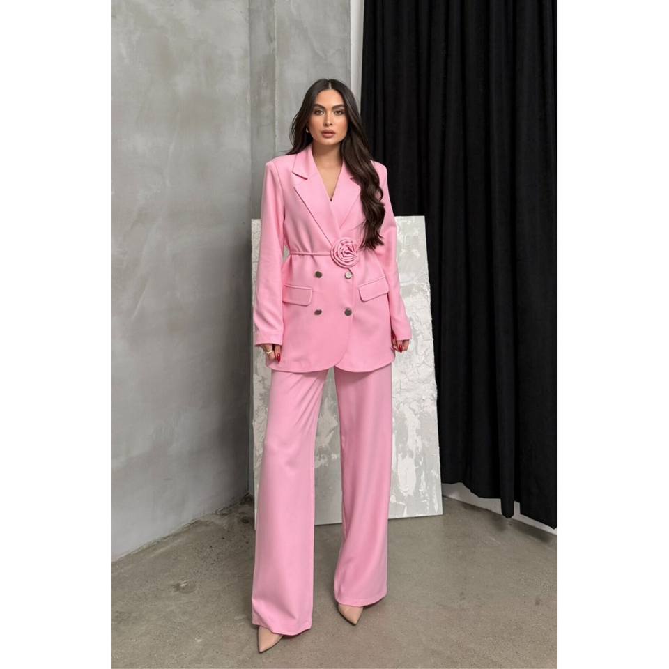 Women's Double Blazer Jacket Trouser Suit with Button Detail and Wide Leg Including Accessories