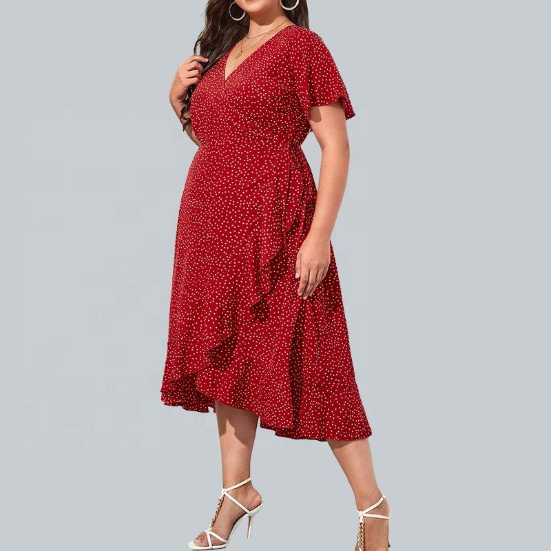 Women's Dress Plus Size Dress Polka Dot High Waist Flounces Red Midi Dress
