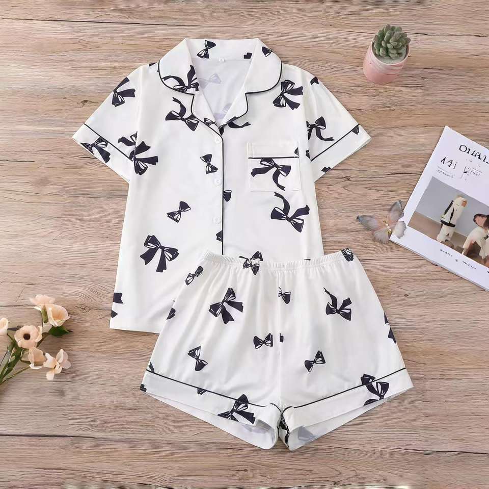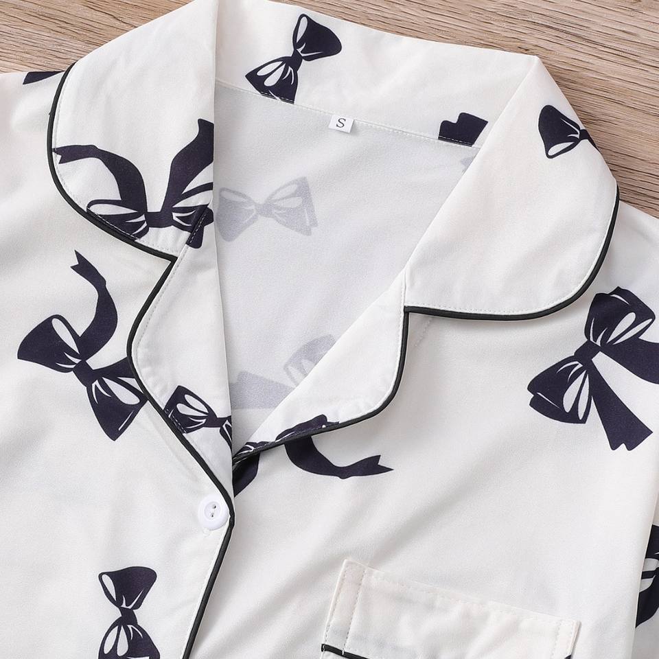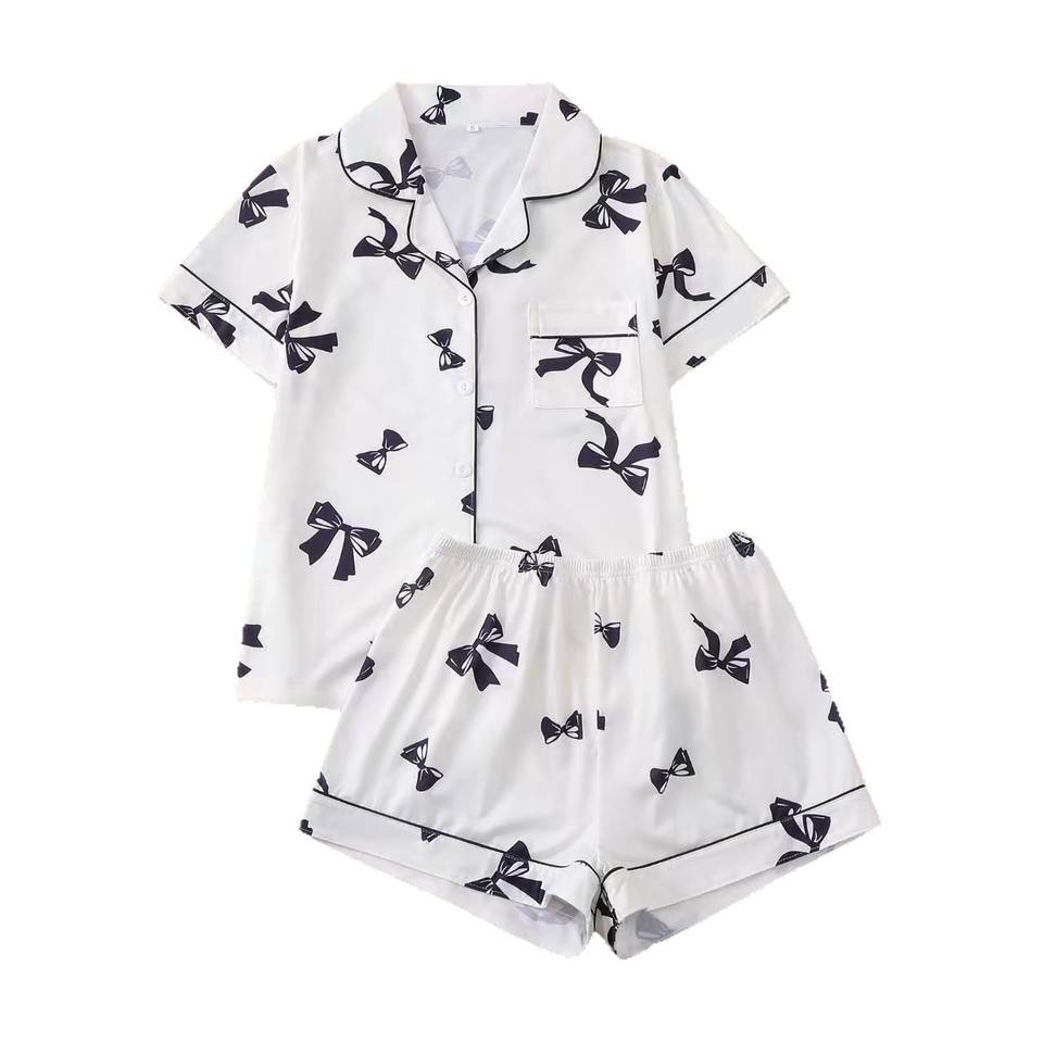 Pigiama da donna con elastico in vita in 2 pezzi, abbigliamento da notte con bottoni e pantaloni larghi con Logo anteriore, abbigliamento estivo con tasche