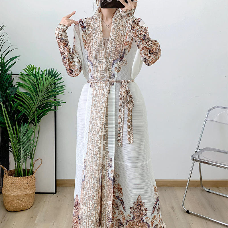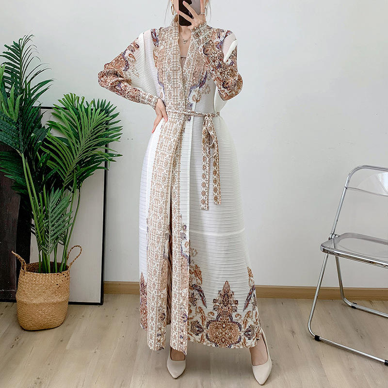 Women's Elegant Beige Pleated Abaya Cross-Border Printed Arabian Robe for Fall for Middle East Foreign Trade