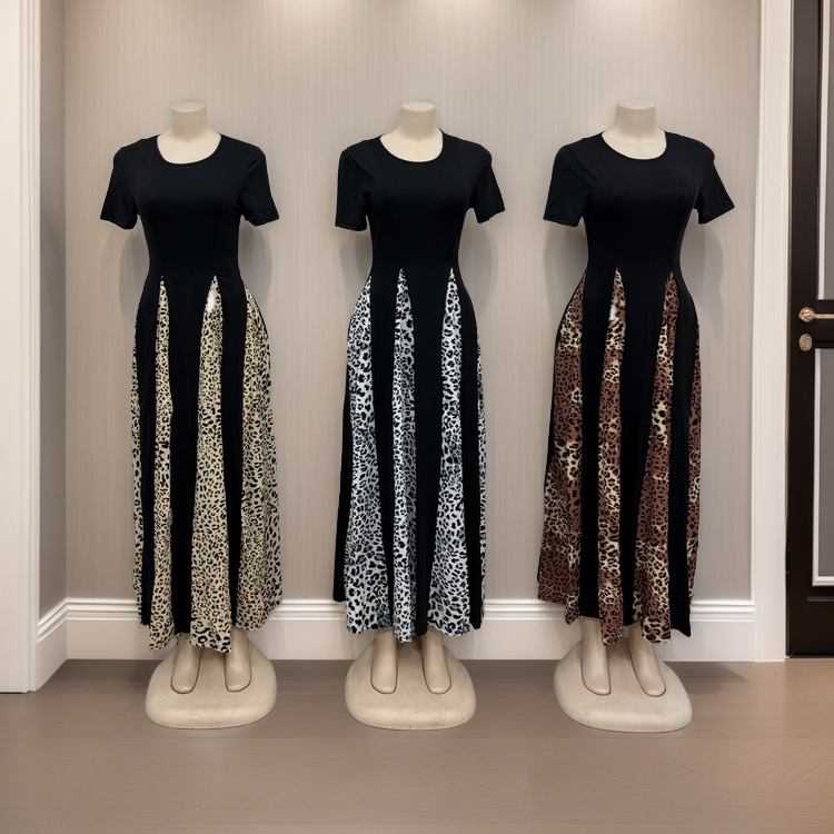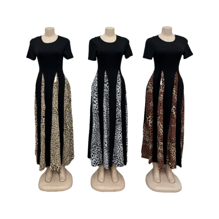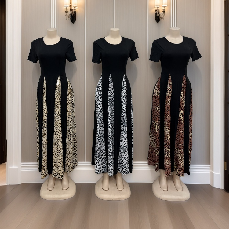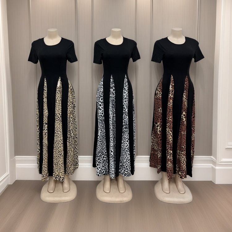 Women's Elegant Casual Dress Leopard Print Vintage High Waist Short Sleeve A- Line Dress
