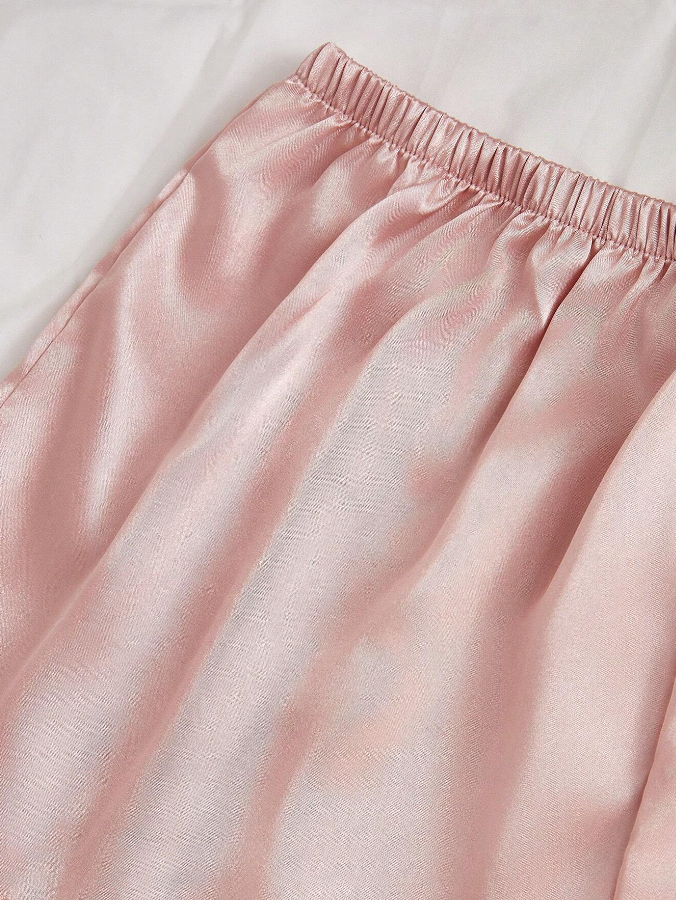 Women's Elegant Lace Trim Satin 4-Piece Pajama Set Strapless Collar Quick Dry Breathable Soft Satin for Summer Sleepwear Night