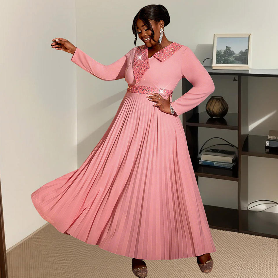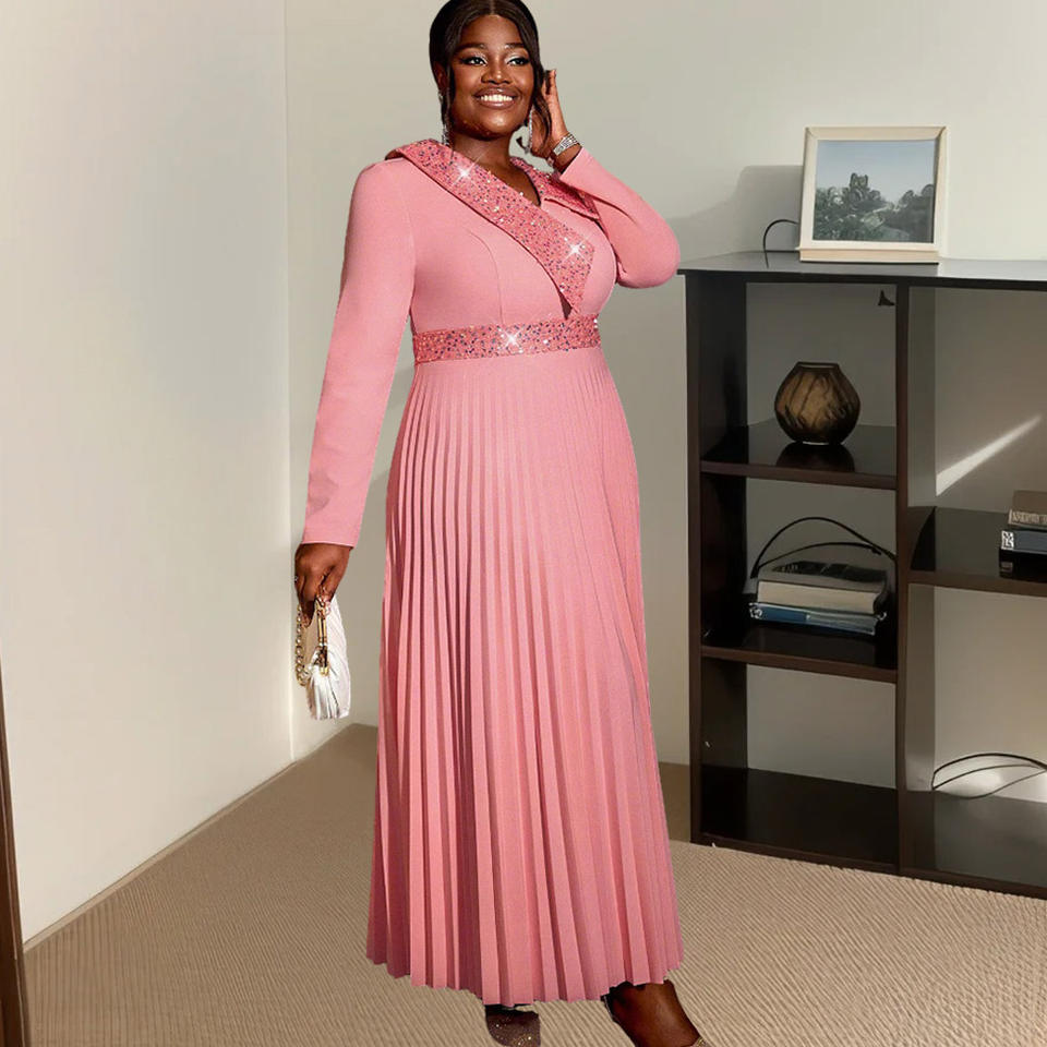 Women's Elegant Pleated Maxi Dress 2025 Spring Collection Tailored Plus-Size Office Attire Chiffon Breathable Digital XS Autumn